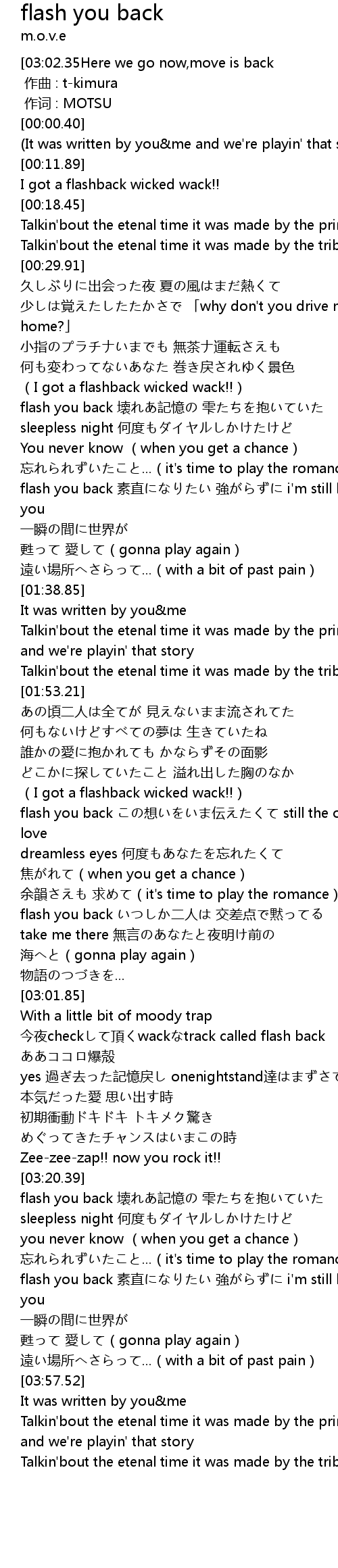 | [03:06.10] | 今夜checkして頂くwackなtrack called flash back |