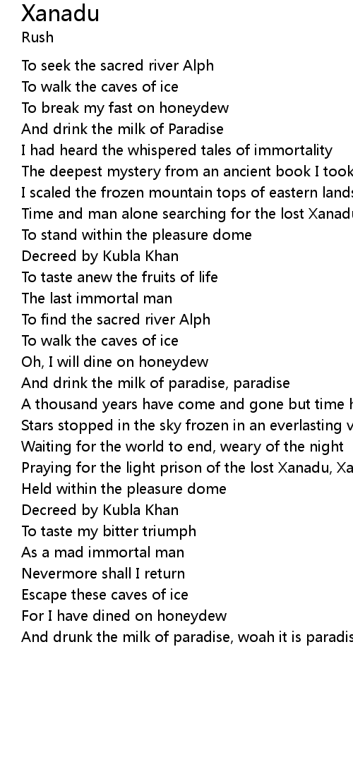 Time and man alone searching for the lost Xanadu, Xanadu |