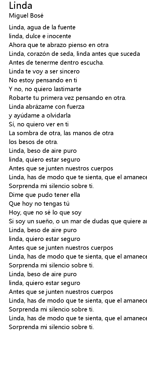 | Linda, corazón de seda, linda antes que suceda | |