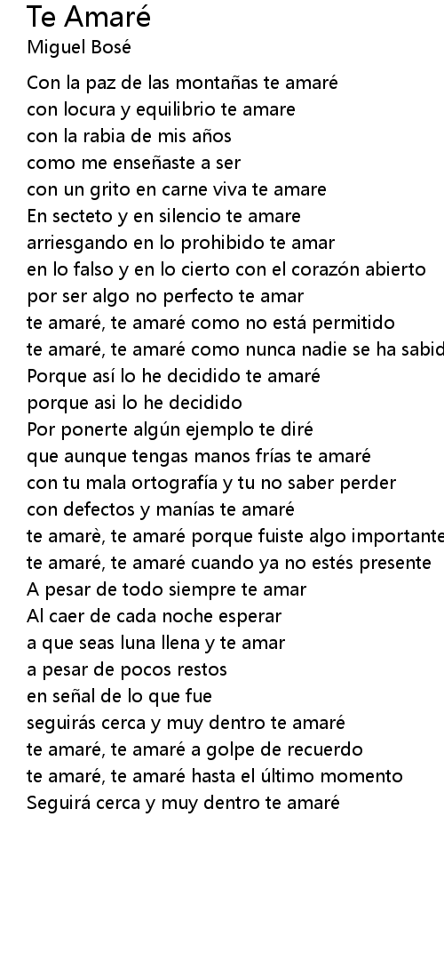 | te amare, te amare como nunca nadie se ha sabido | |