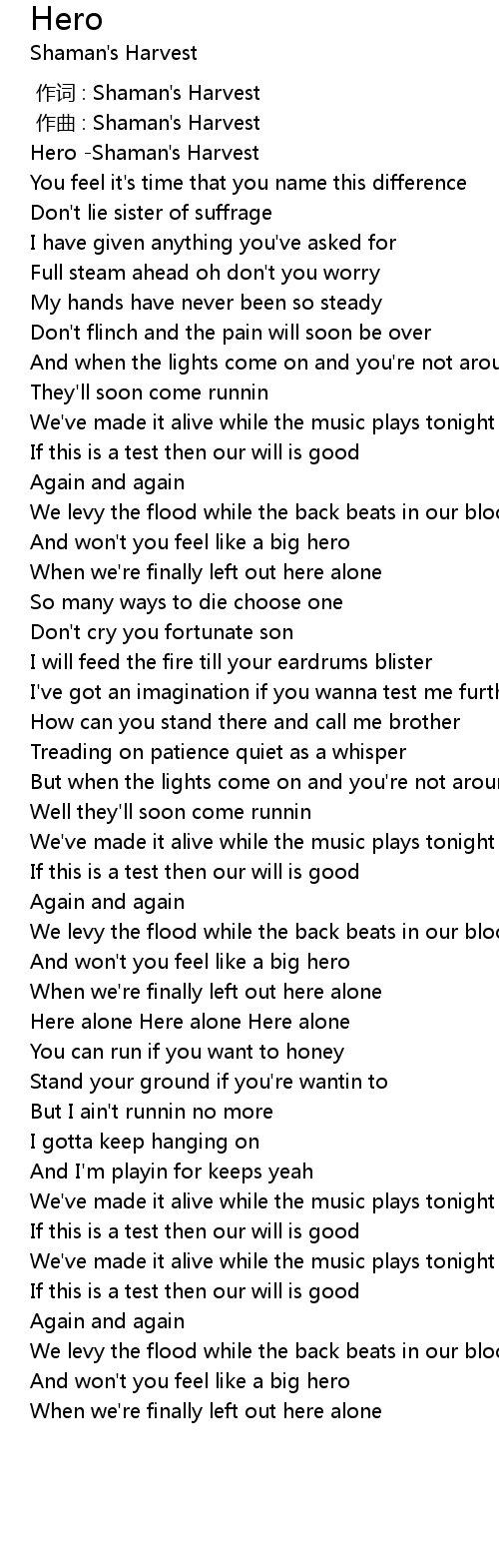 | [00:00.000] | 作词 : Shaman's Harvest |