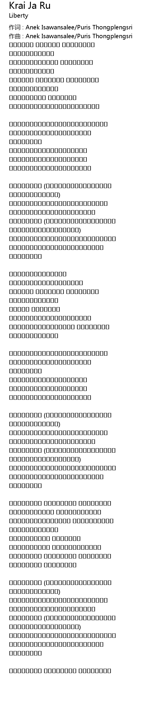 作词 : Anek Isawansalee/Puris Thongplengsri |