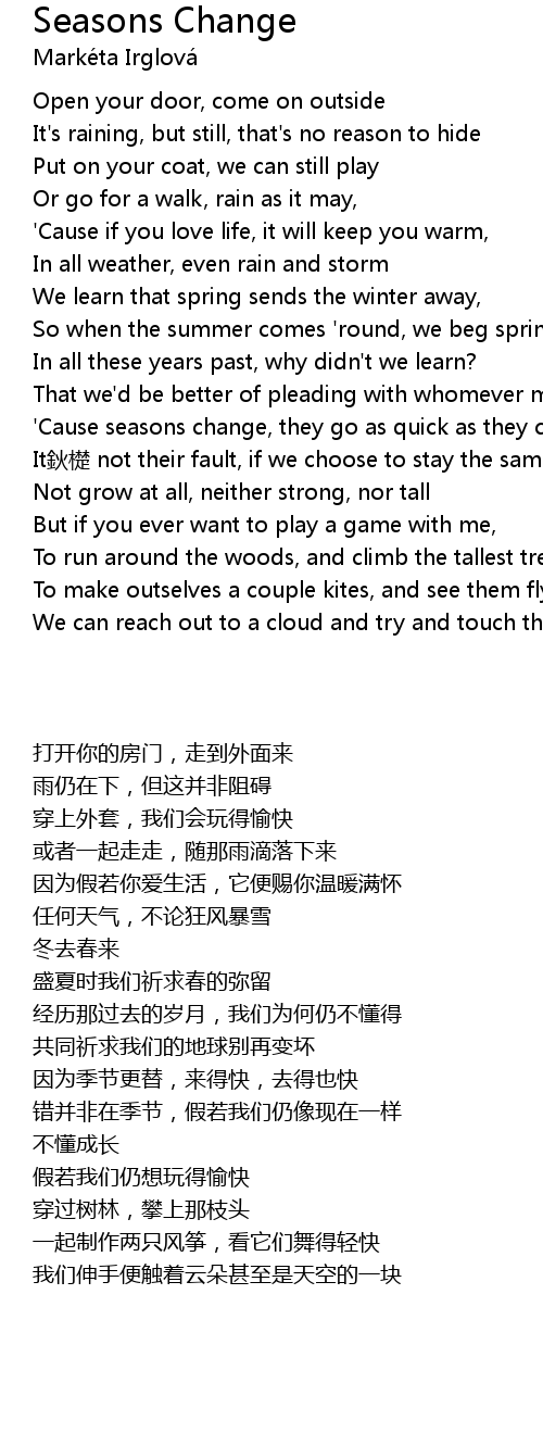 | [01:21.41] | So when the summer comes 'round, we beg spring to stay, but |
