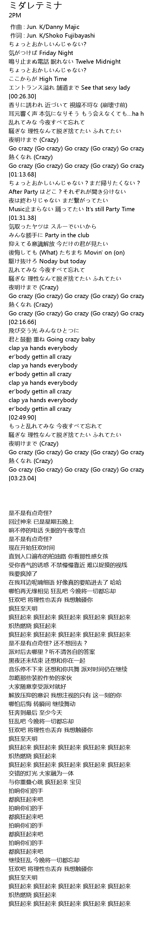 | [02:03.85] | Go crazy Go crazy Go crazy Go crazy Go crazy |