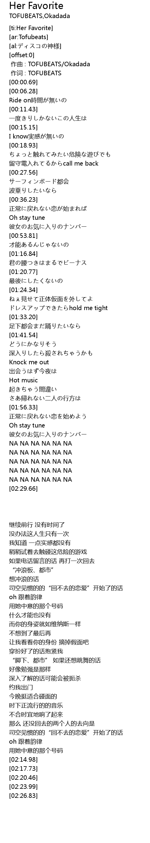 | [02:08.10] | 彼女のお気に入りのナンバー |
