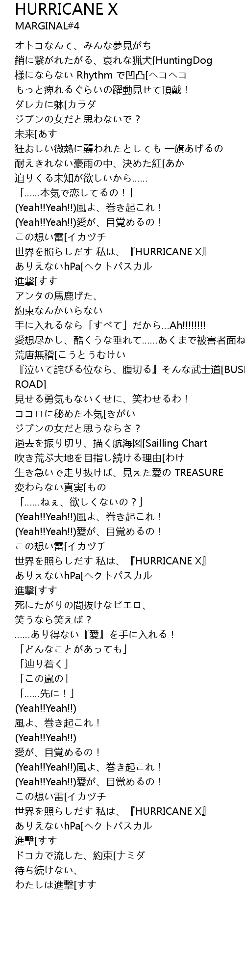 | [04:44.47] | 世界を照らしだす 私は、『HURRICANE X』 |