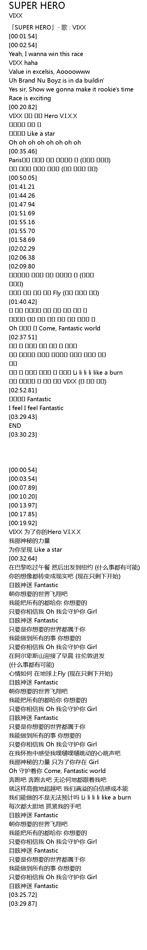 | [00:00.54] | SUPER HERO ge VIXX |