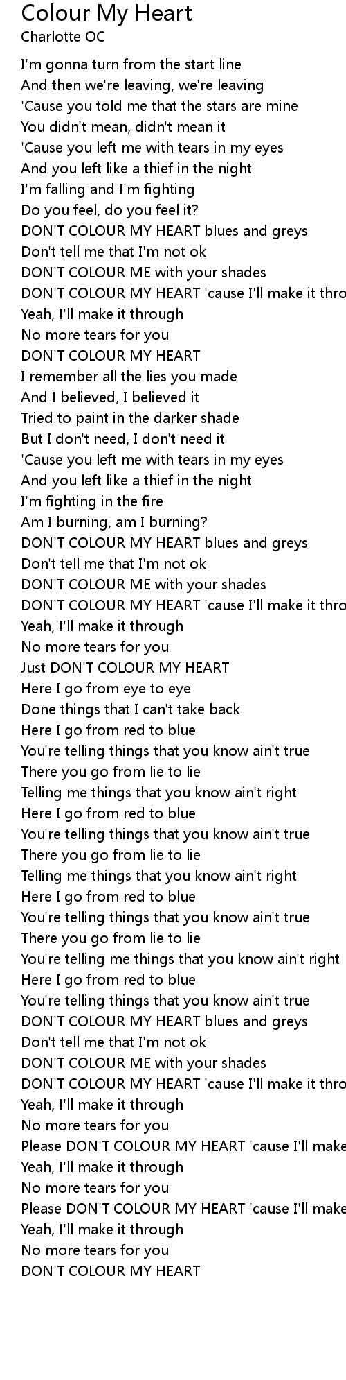 Please DON'T COLOUR MY HEART 'cause I'll make it through |