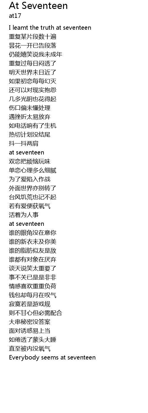 | Song | At Seventeen |