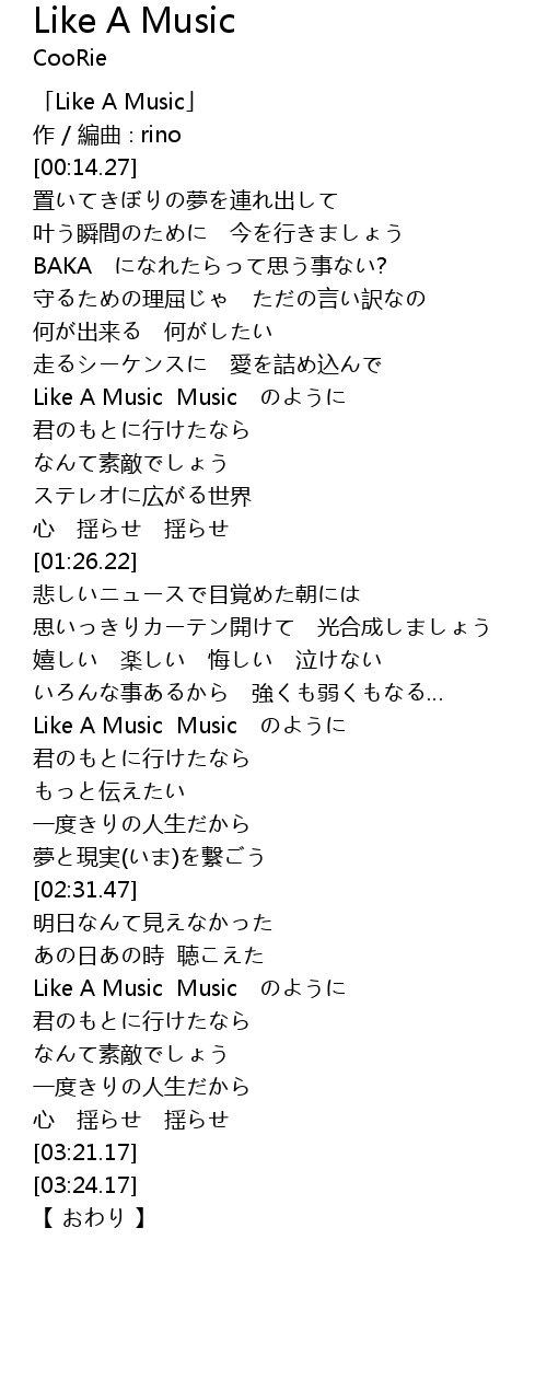 | [01:20.91] | 心 揺らせ 揺らせ |