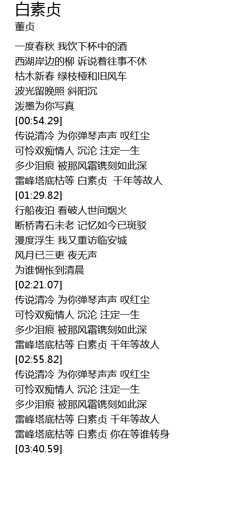 | [03:29.17] | 雷峰塔底枯等 白素贞 你在等谁转身 |