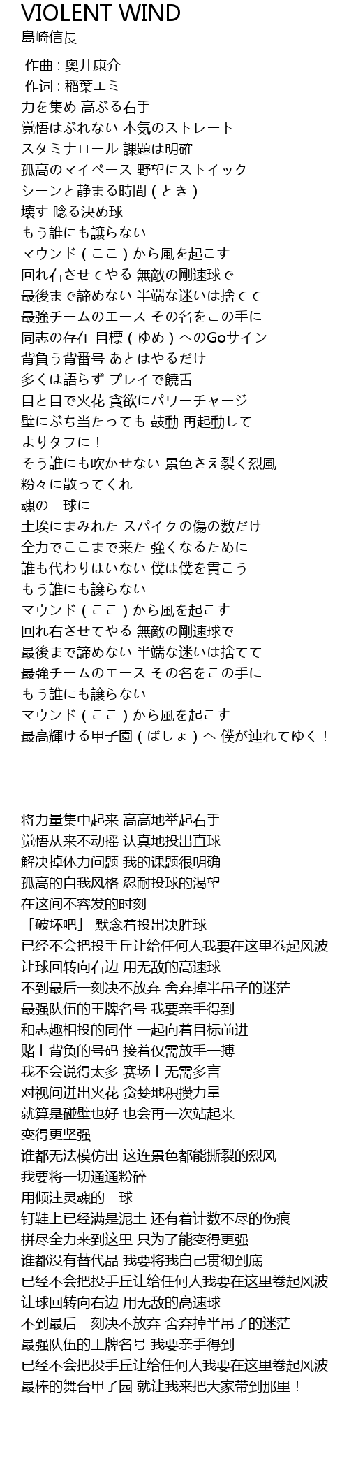 | [03:35.83] | もう誰にも譲らない マウンド(ここ)から風を起こす |