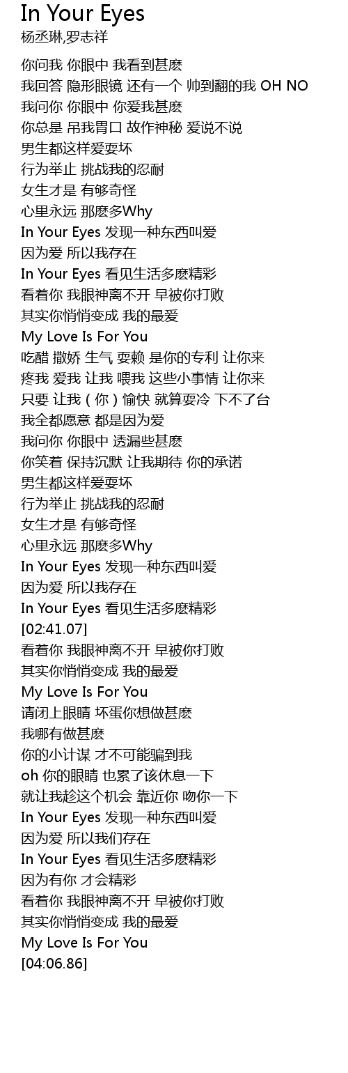 | [01:05.87] | In Your Eyes 发现一种东西叫爱 |