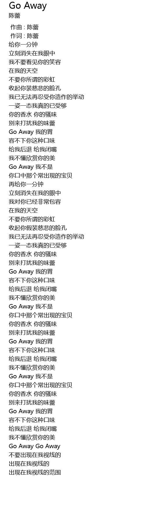 | [01:02.70] | Go Away 我不是 |