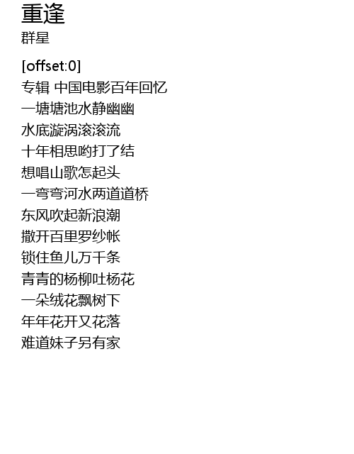 | [00:04.35] | 专辑 中国电影百年回忆 |