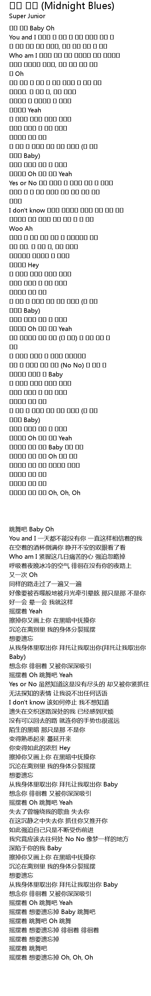 흔들린다 잊고 싶다 Baby 춤을 춘다 |