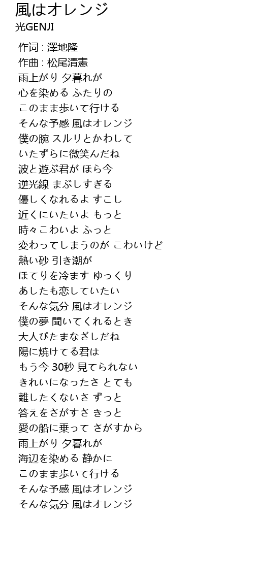 | [04:02.945] | そんな予感 風はオレンジ |