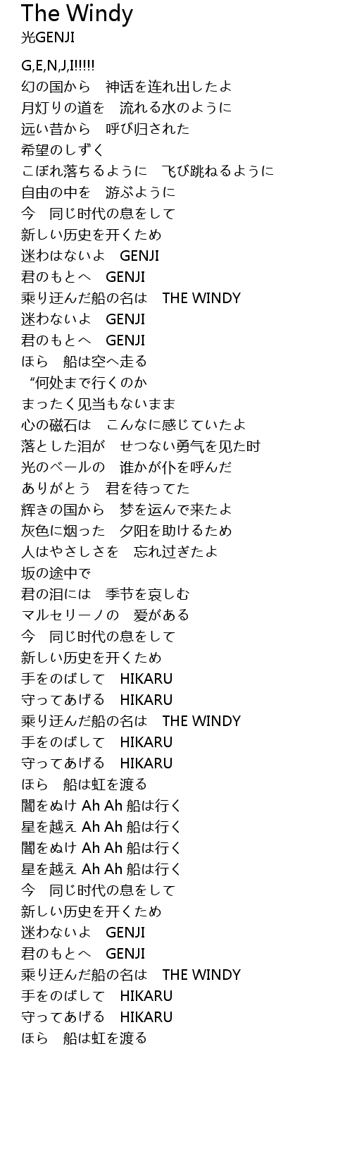 | [04:23.10] | 乘り迂んだ船の名は THE WINDY |