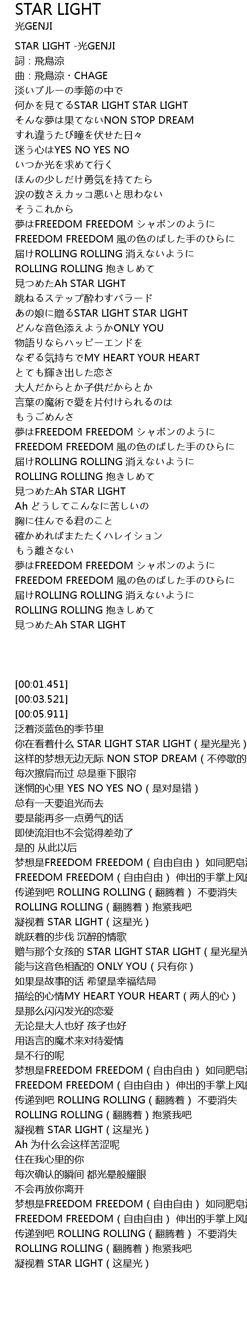 | [00:01.451] | STAR LIGHT guāng GENJI |
