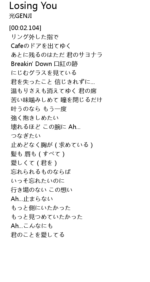 | [00:59.250] | 君を失ったこと 信じきれずに... |