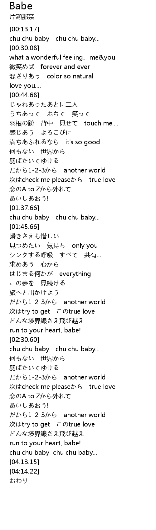 | [03:39.30] | chu chu baby chu chu baby... |