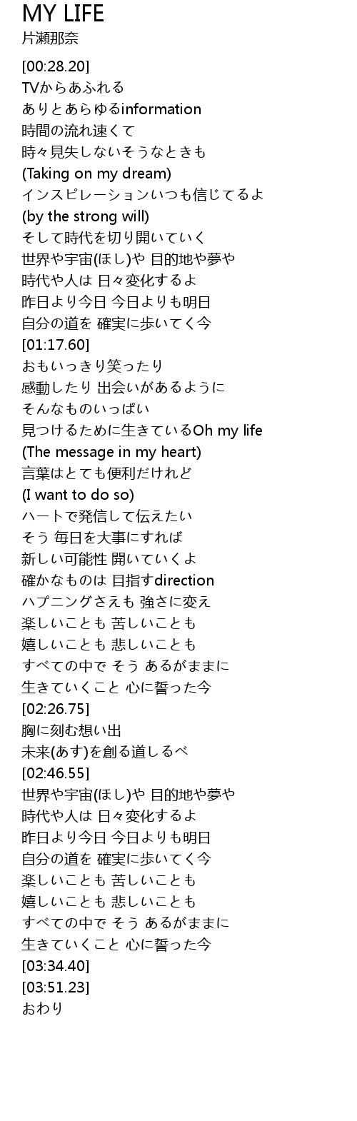 | [03:21.03] | 嬉しいことも 悲しいことも |