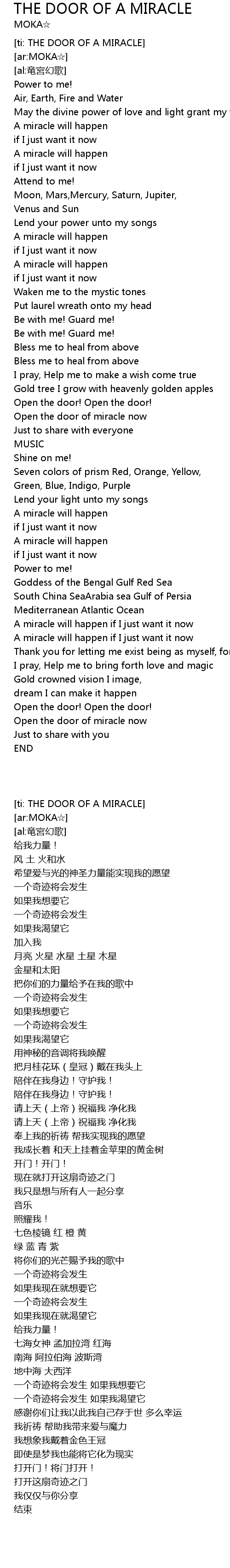 | [00:29.60] | May the divine power of love and light grant my wish |