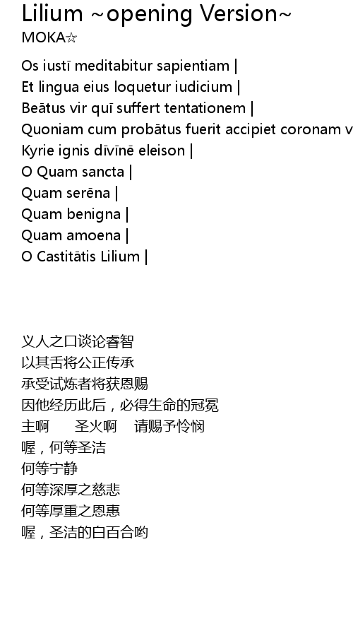 | [00:49.460] | Kyrie ignis di vi ne eleison |
