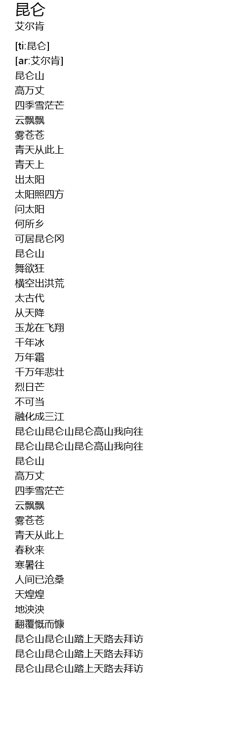 | [03:47.49] | 昆仑山昆仑山踏上天路去拜访 |