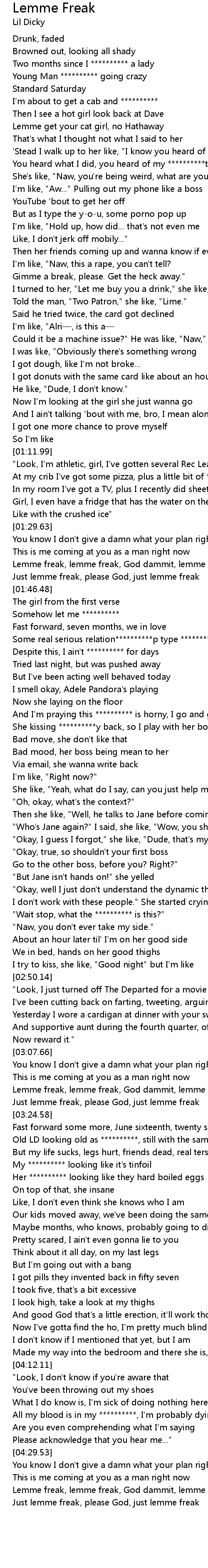 | [03:21.46] | Just lemme freak, please God, just lemme freak |