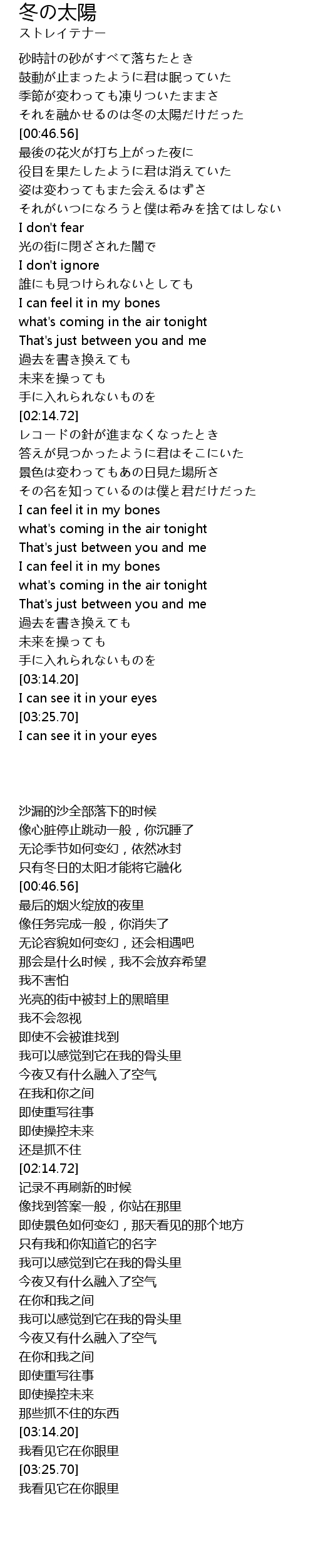 | [00:40.98] | それを融かせるのは冬の太陽だけだった |