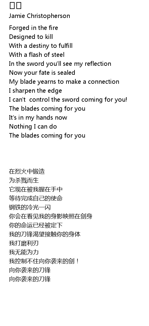 | [01:21] | My blade yearns to make a connection |