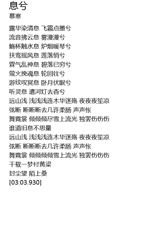 | [02:07.160] | 远山浅 浅浅浅连木华迷殇 夜夜夜笙凉 |