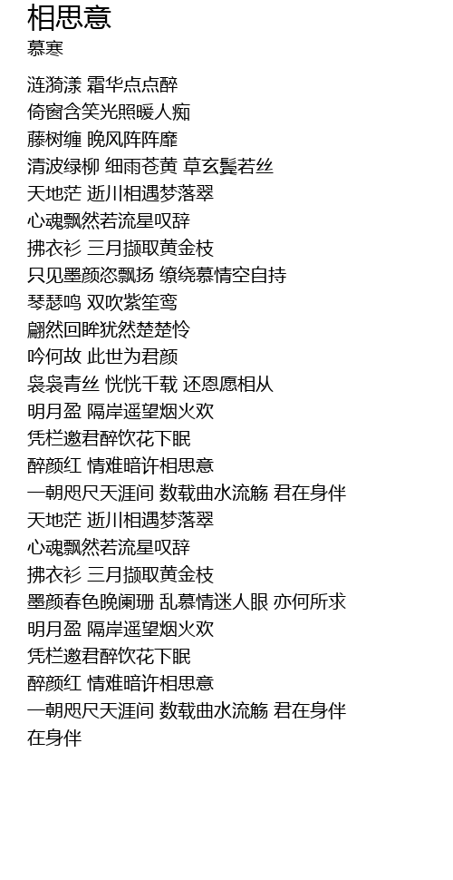 | [01:44.000] | zhī jiàn mò yán zì piāo yáng liáo rào mù qíng kōng zì chí |