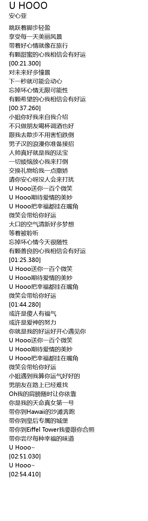 | [02:24.780] | U Hooo bǎ xìng fú dōu guà zài zuǐ jiǎo |