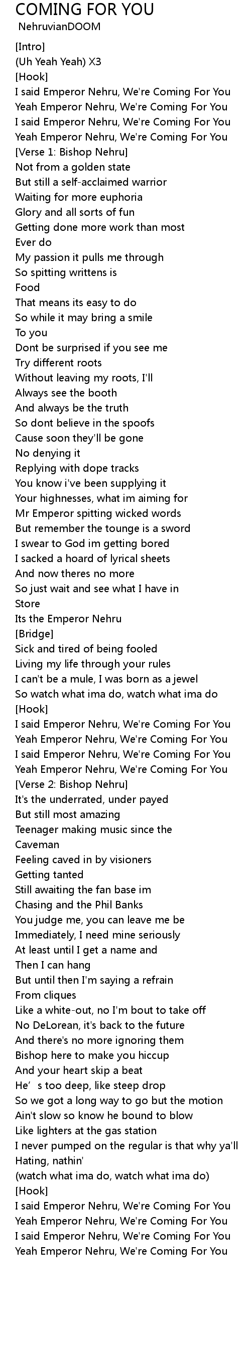 | [Verse 2: Bishop Nehru] | |