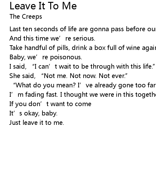 | Song | Leave It To Me |