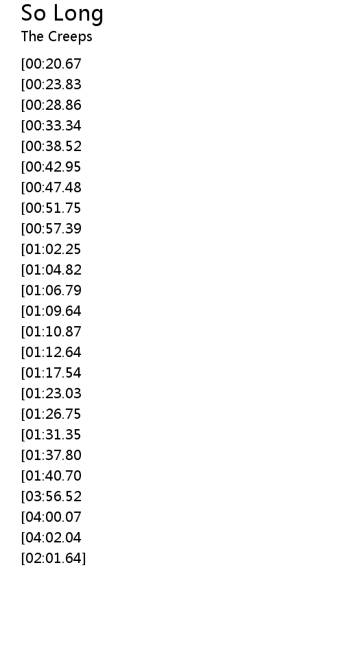 | [02:29.36][00:20.67] | SO LONG BEEN WAITING SO LONG |