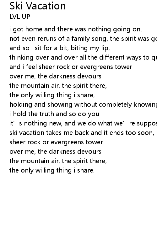 | ski vacation takes me back and it ends too soon, | |