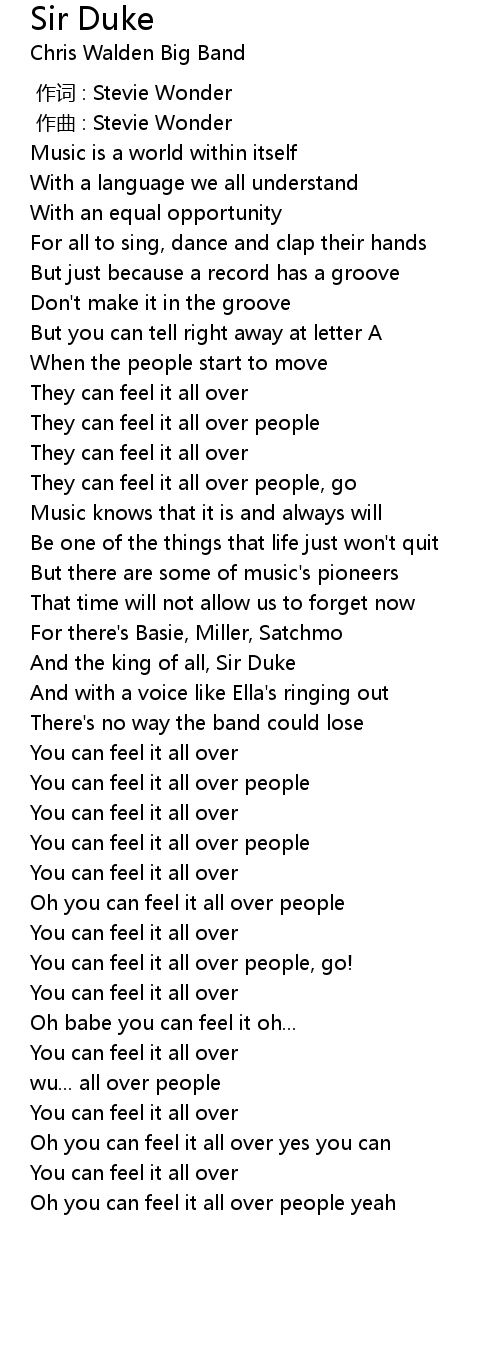 | [01:39.997] | And the king of all, Sir Duke |