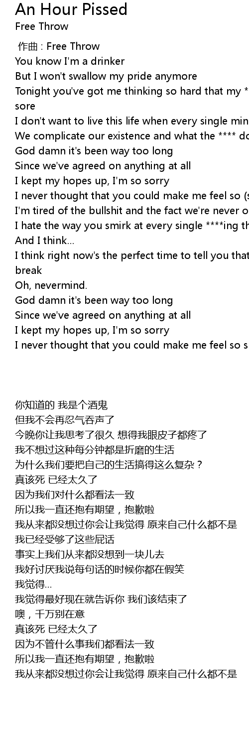 | [01:06.52] | Tonight you've got me thinking so hard that my ****ing eyelids are sore |