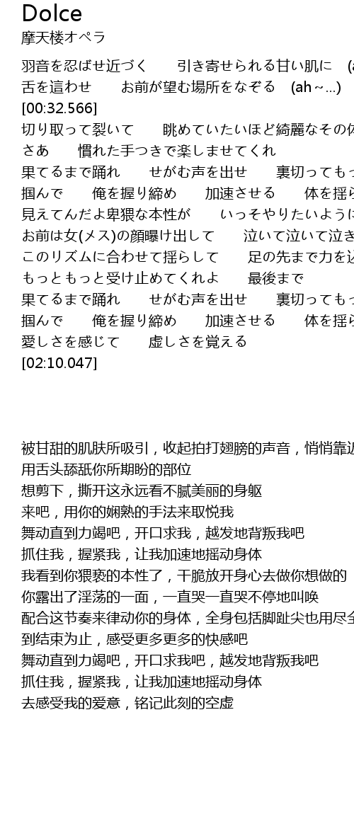 | [01:35.728] | 果てるまで踊れ せがむ声を出せ 裏切ってもっと (ah~...) |