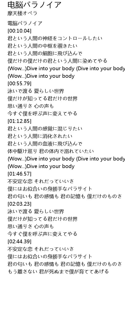 | [00:06.19] | 電脳パラノイア |