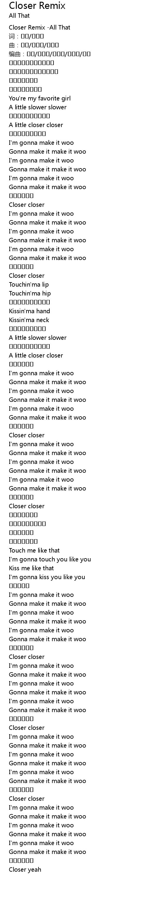 | [00:00.507] | Closer Remix All That |