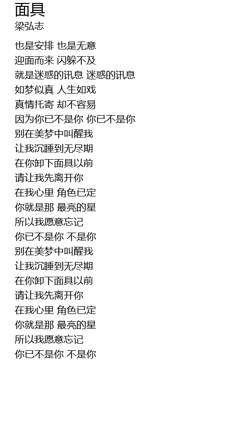 | [02:06.290] | 你已不是你 不是你 |