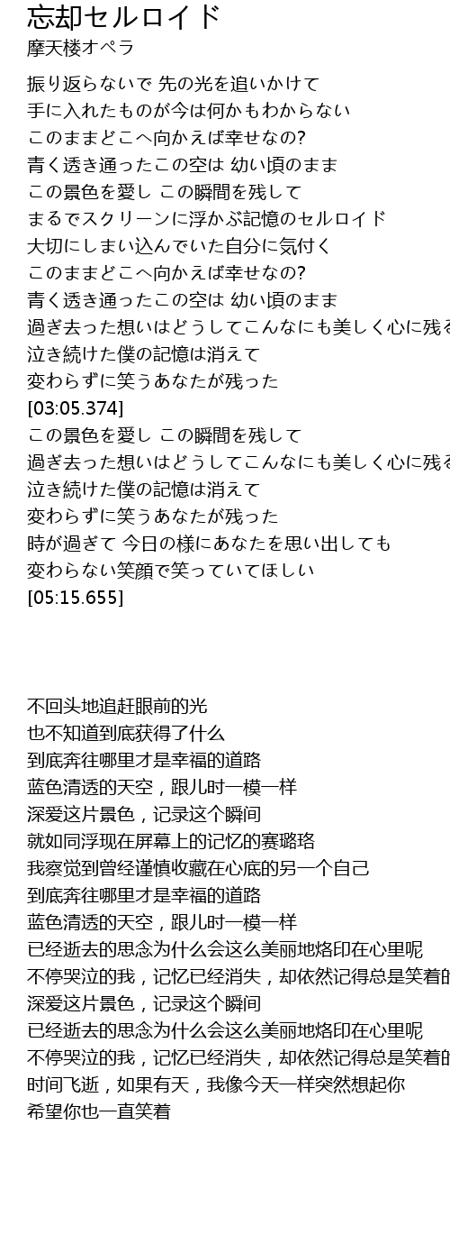 | [01:47.568] | まるでスクリーンに浮かぶ記憶のセルロイド |