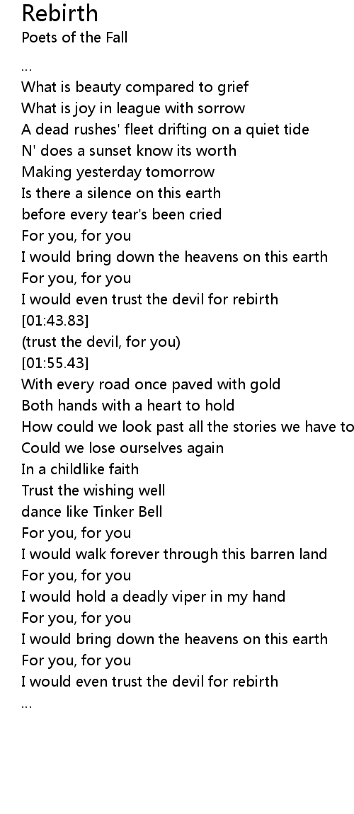 | [01:37.69] | I would even trust the devil for rebirth |