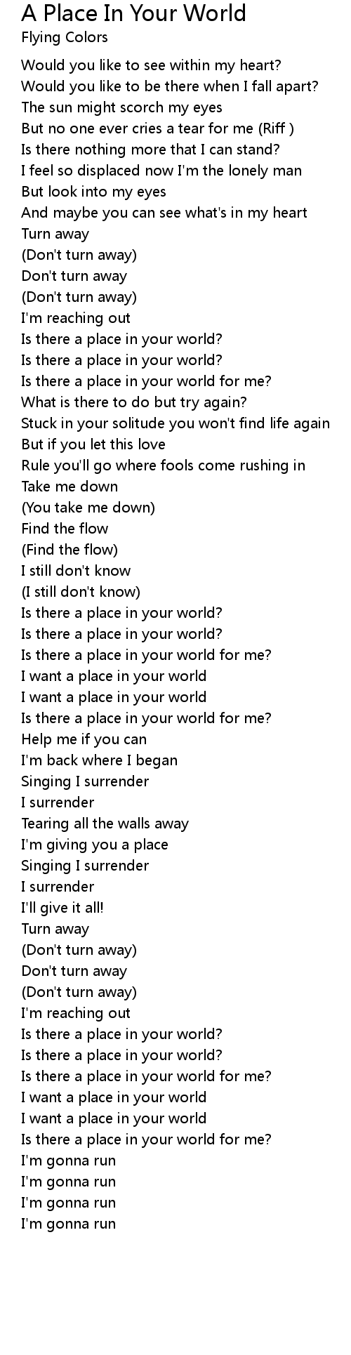 Is there a place in your world? |