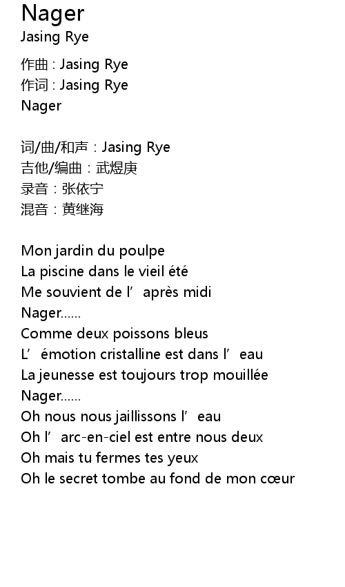 | 作词 : Jasing Rye | |