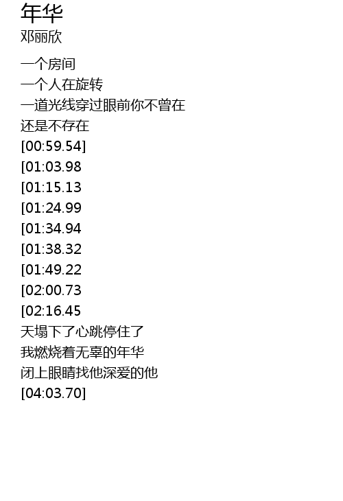| [03:39.73] | 我燃烧着无辜的年华 |